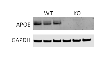 ALSTEM’s footprint-free human iPS (induced pluripotent stem) cell line with APOE knockout (KO) (cat# iPS36) was derived from the Alstem's iPSC line (cat# iPS16) by advanced genome editing tool. Sequencing results confirmed that this iPS36 isogenic iPSC line has a stable 100 bp homozygous deletion in the exon 2 of APOE gene (Figure 1). The morphology of this human iPS cell line is identical to that of human ES cells. The cells also express the pluripotency markers TRA-1-60, SSEA-3 and OCT4, and demonstrate strong endogenous alkaline phosphatase activity.